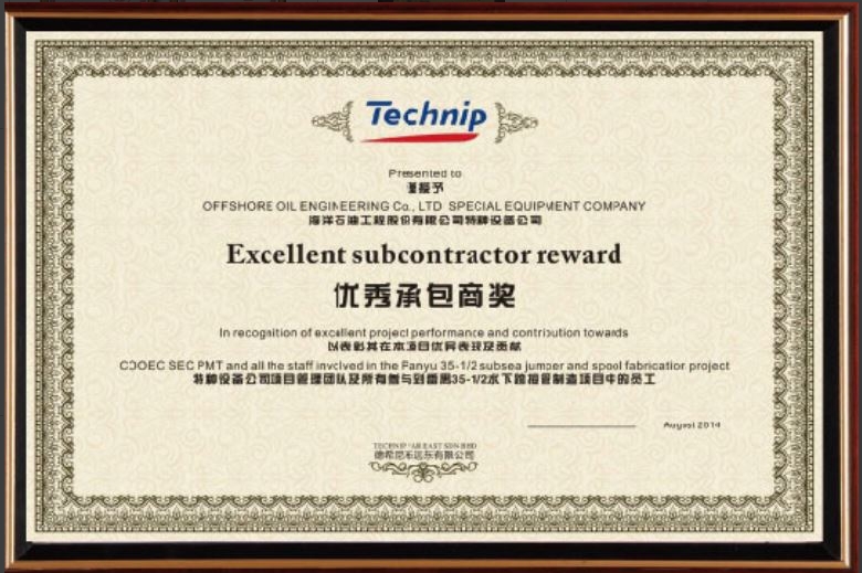 • Supplier Recognition Award from Technip